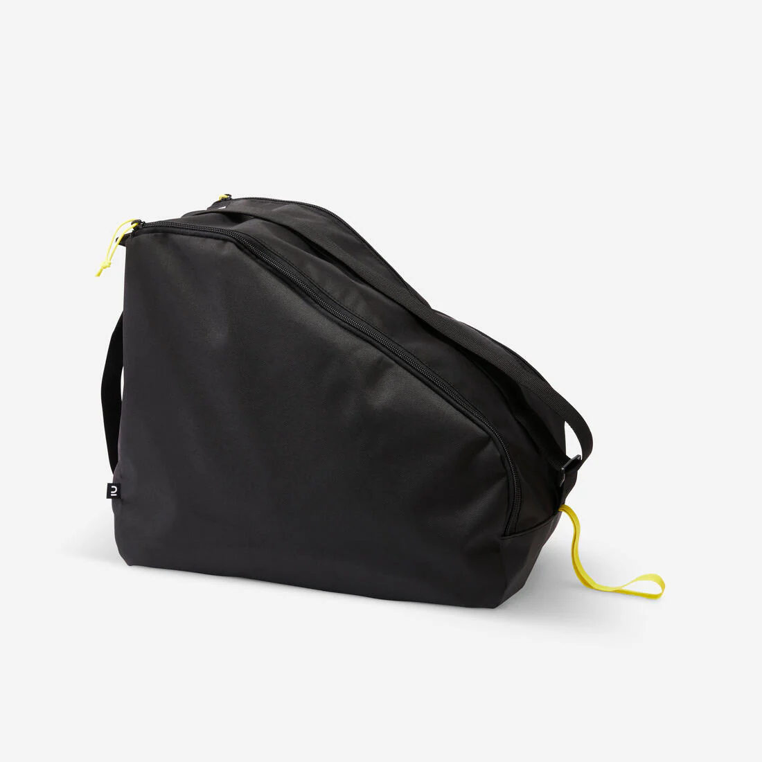 Ideal para guardar los rollers hasta la talla 42 y los equipos de protección. Forma de triángulo redondeado. Dimensiones: Longitud: 40 cm, anchura:20 cm, altura: 35 cm en el punto más alto.